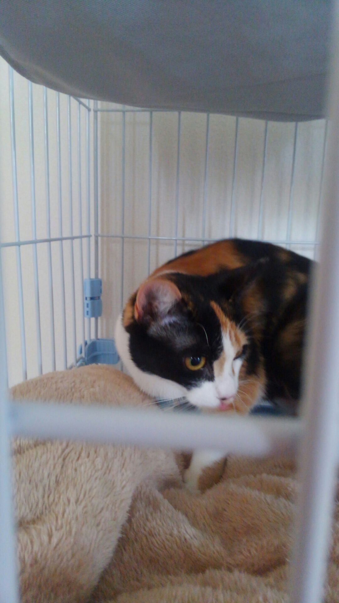 用意してくださったゲージの中でひとまず落ち着く? と思いきや「出して~!」でした。