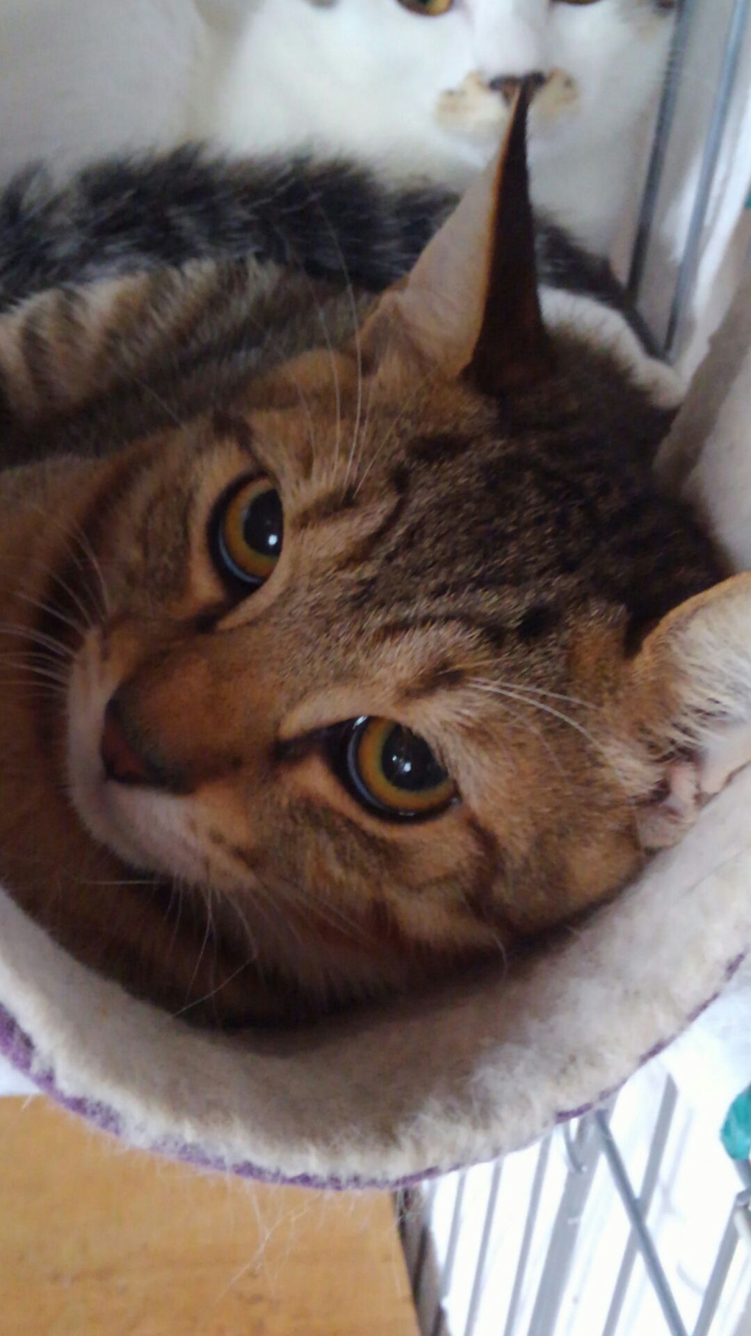 ウールのフェルトの丸型くり抜きベッドが気に入ったようでこもっていました。