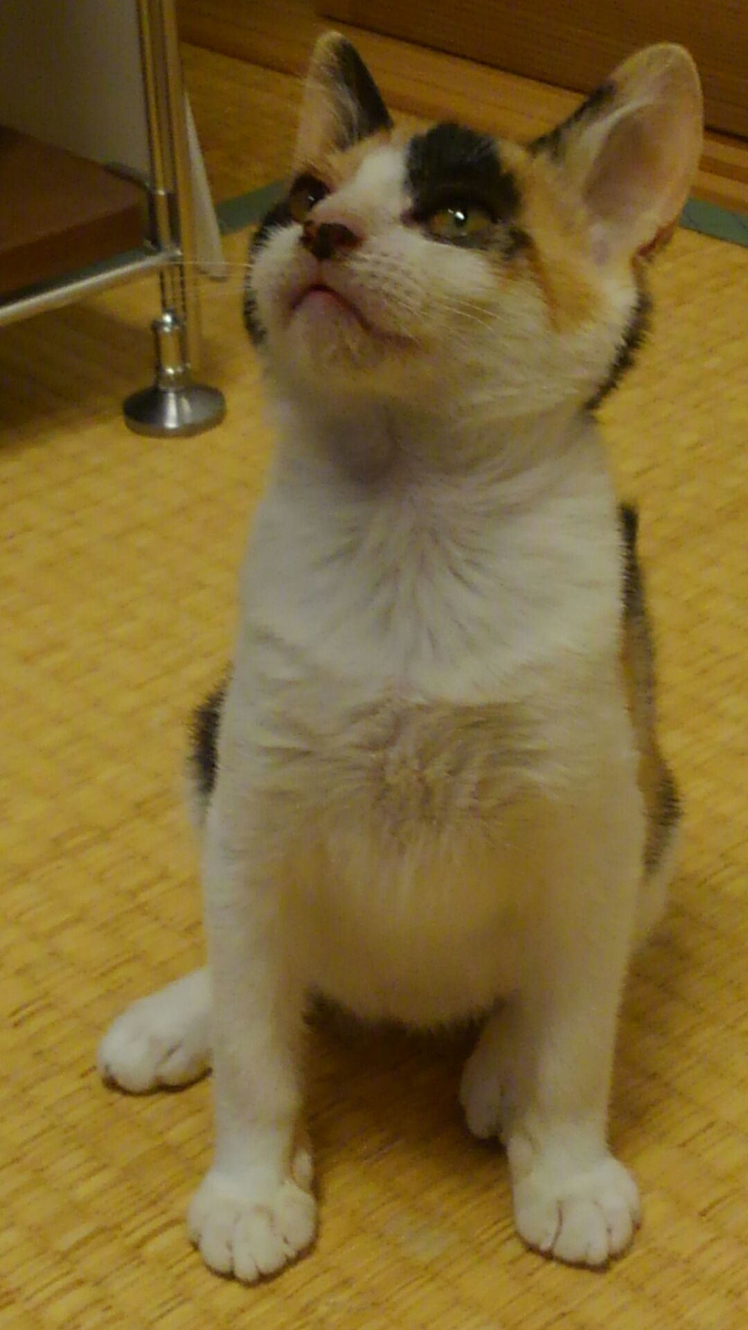 6匹の子猫たちのうちシャムミックス風の2匹はゲージを卒業して無垢の床を気持ちよさそうに歩いています。