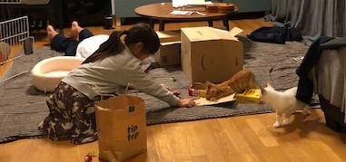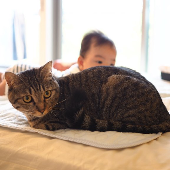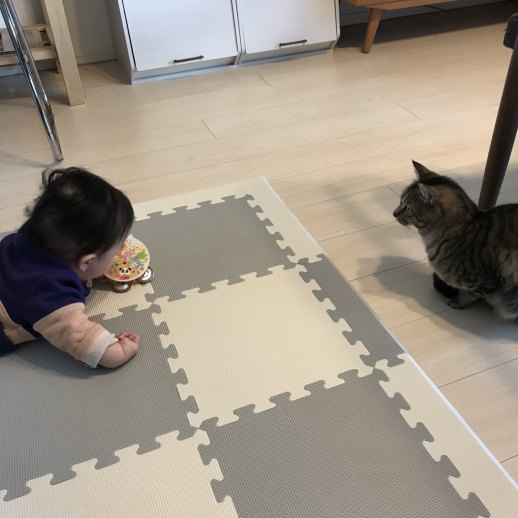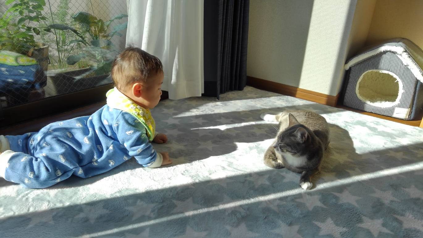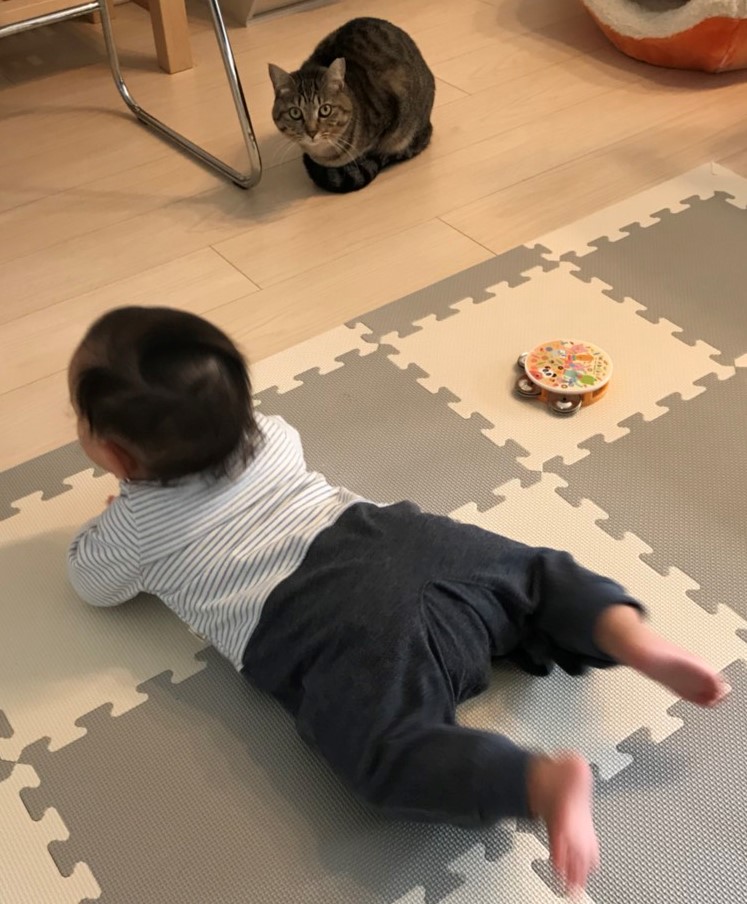 赤ちゃんが生まれて猫たちは最初は赤ちゃんの存在に驚き気を使いながらも、いつの間にか当たり前になって、赤ちゃんも猫も互いを受け入れ暮らしているのが素晴らしくってうれしいです!!