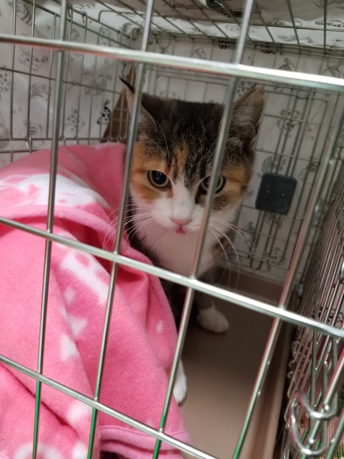 おトイレもできてチュールも食べましたが、にゃおにゃお鳴いたり落ち着かないそうです。