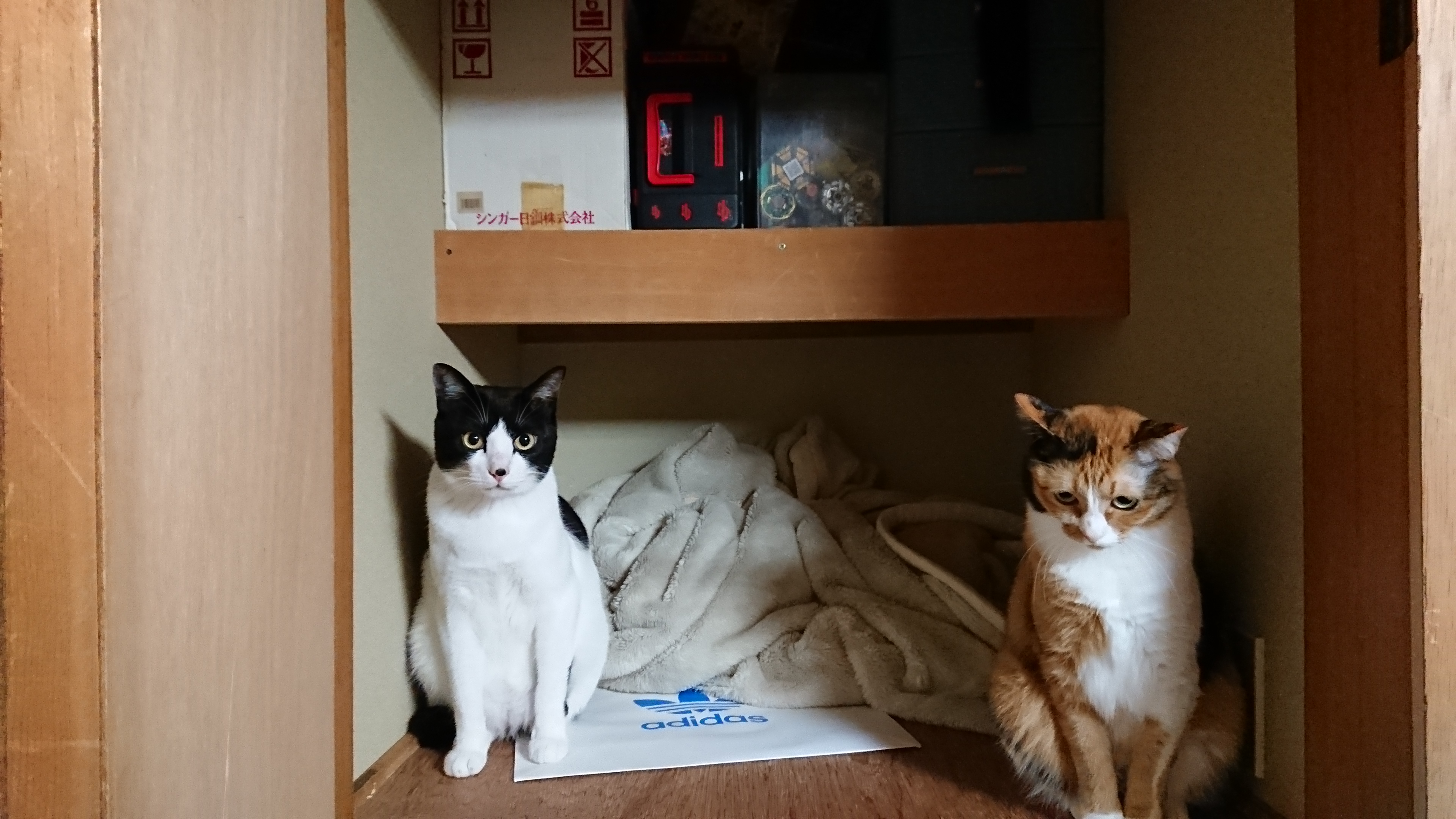 今朝もまめすけとつるんで納戸で何かコソコソしていました。