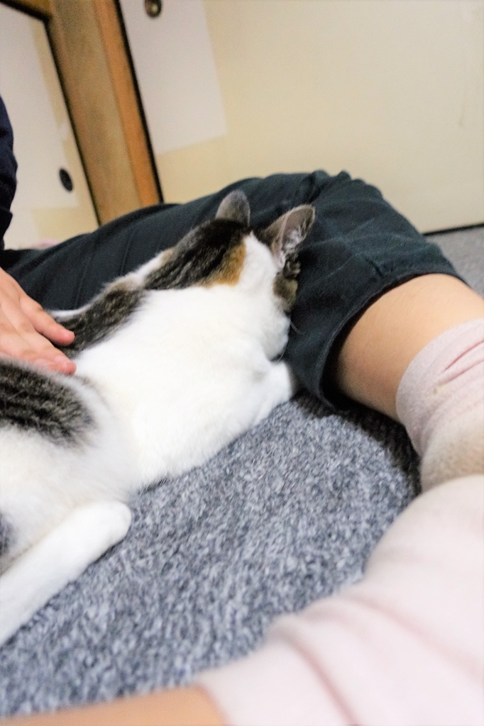 街の片隅で通りがかりの人にご飯をもらいながら必死に子猫を守り生きてきたママ猫和香ちゃんは、ようやく夜鳴きや外への出たがりもおさまっています。