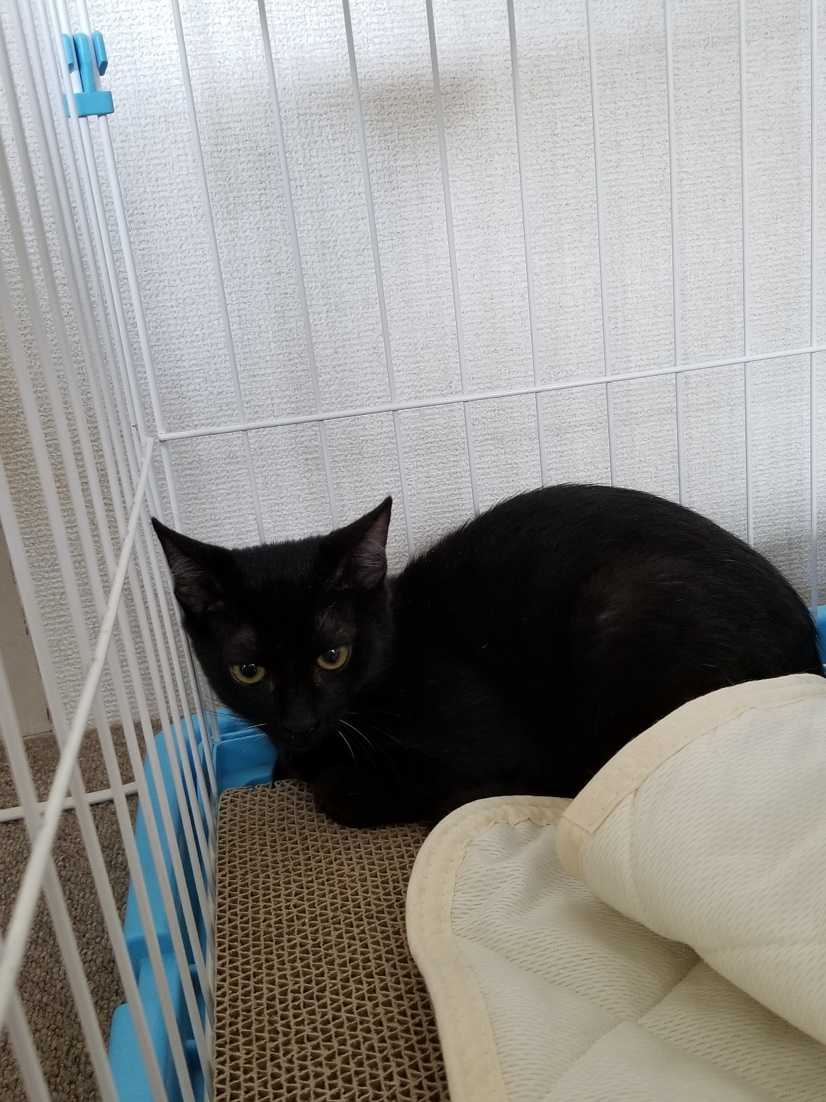 まっくん、車中ひと鳴きもせずひたすらだんまりでした。さあ、おうちにつきました。