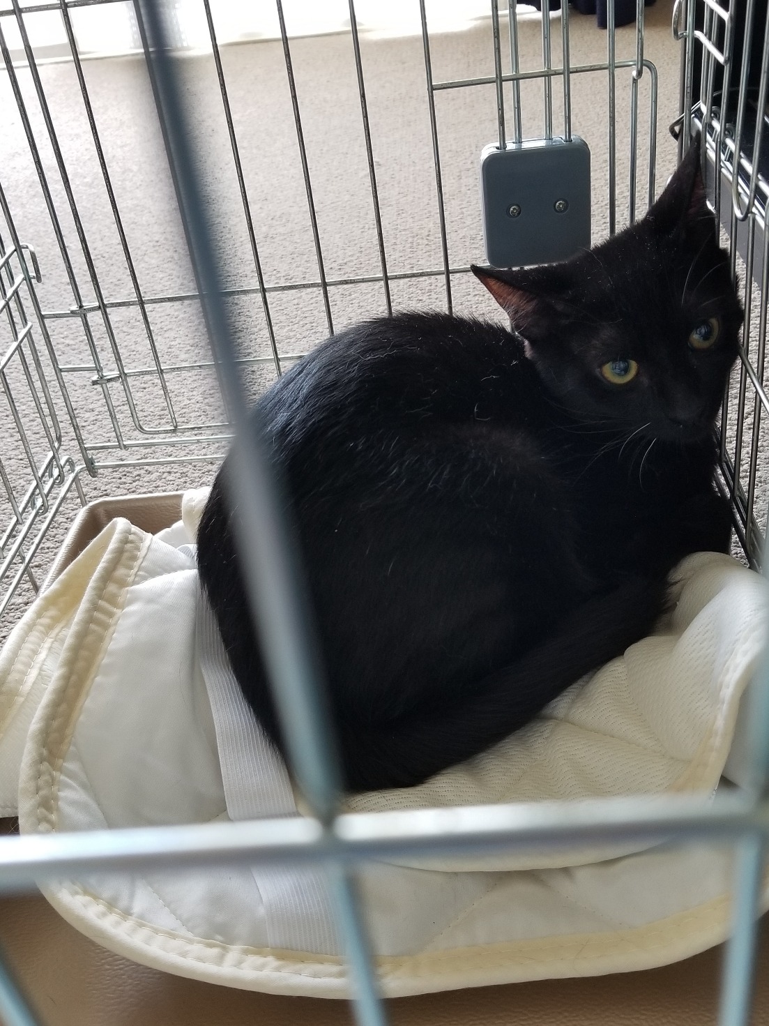 3兄弟の中で一番人馴れしていない子なので、まずはどうキャリーに入れるか頭の中でシュミレーションして、なかなか寝付けず浅い眠りのまま朝を迎えました。