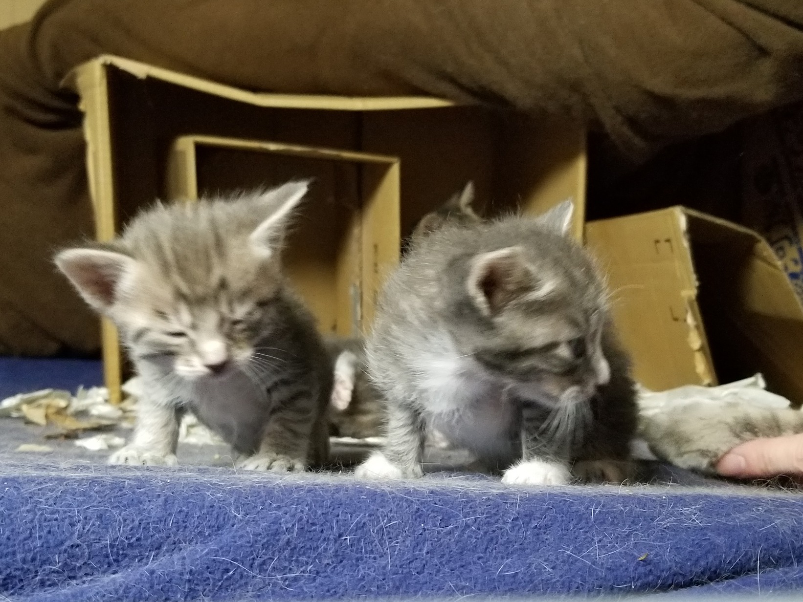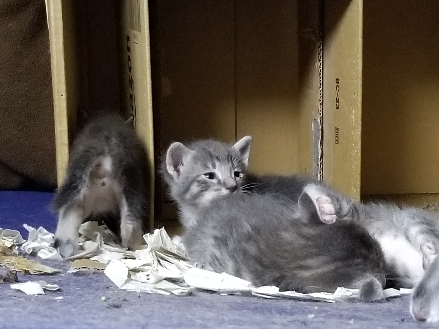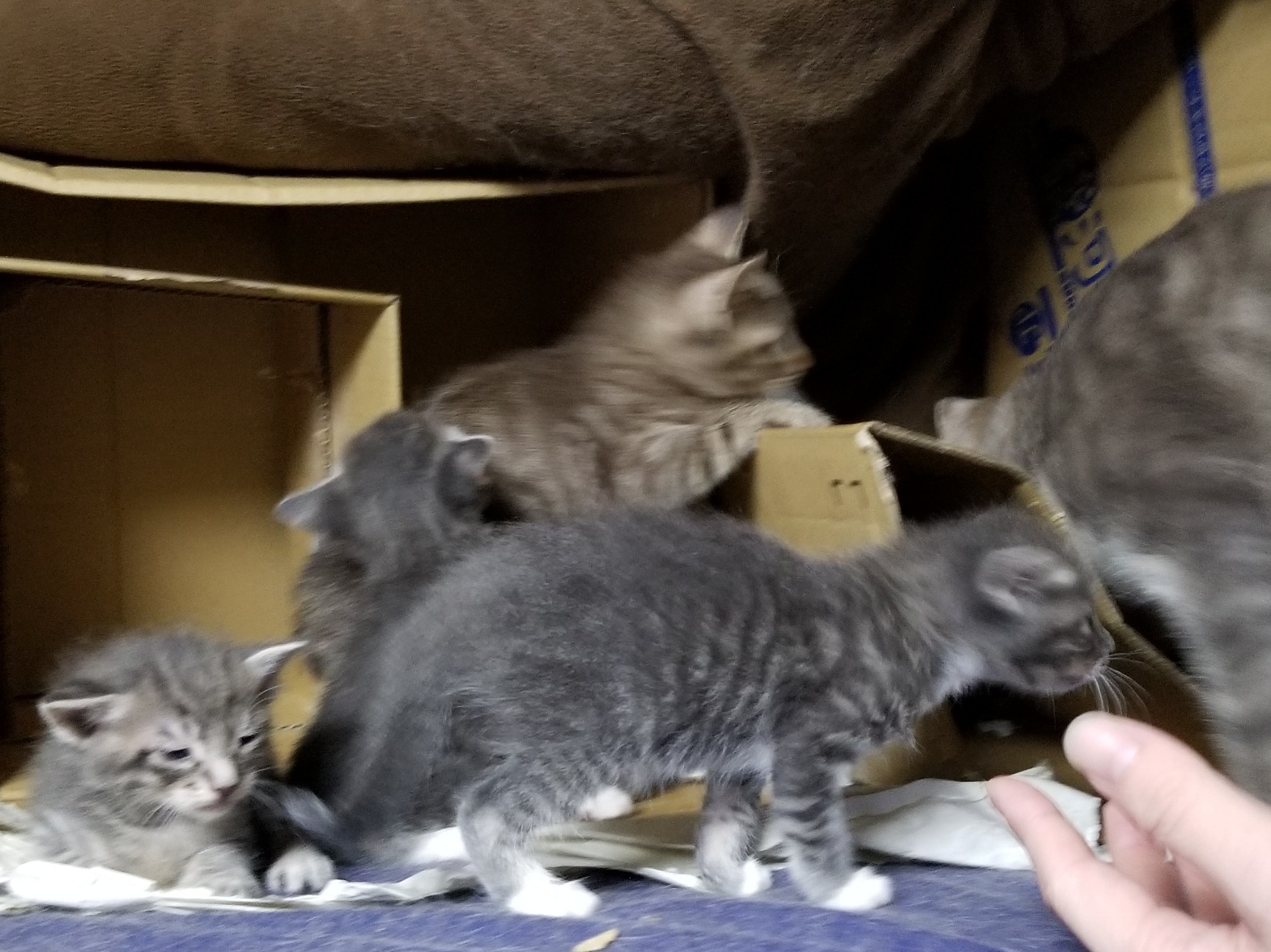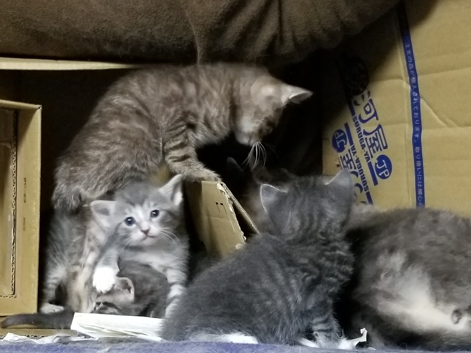 押し入れに引きこもりのママ猫と1か月の子猫2匹。