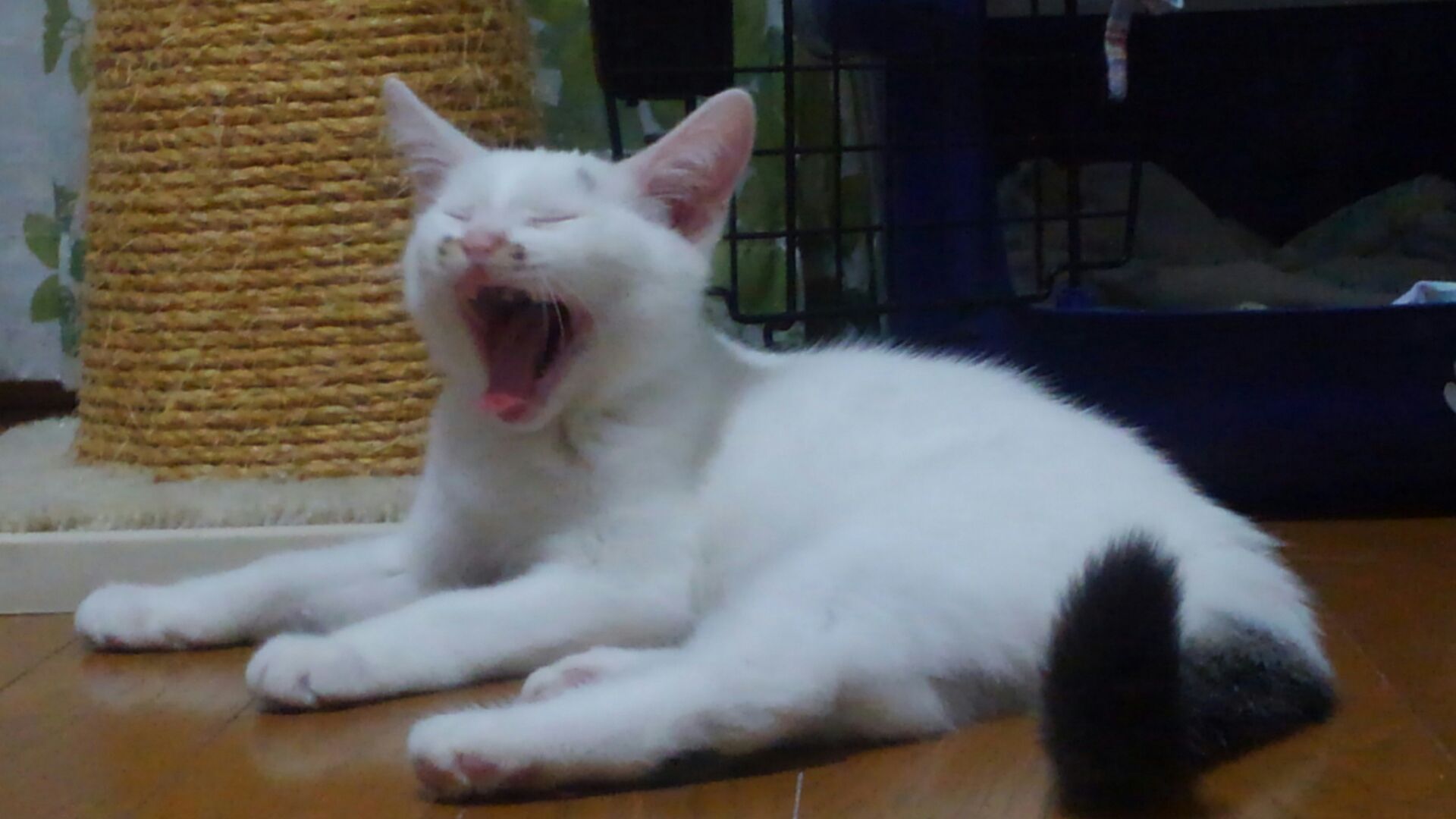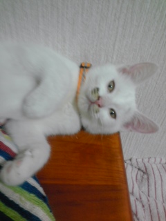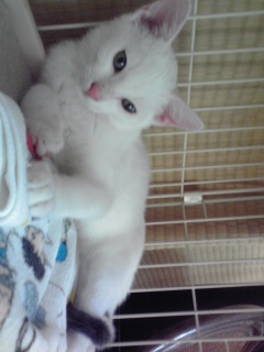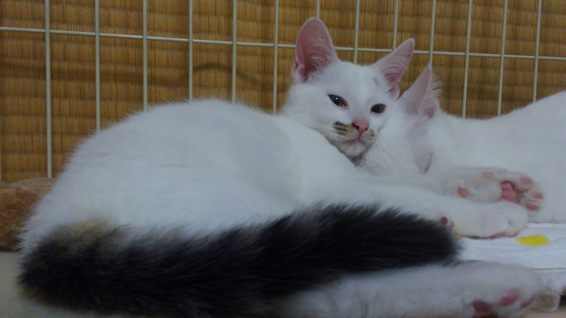 あら? 真っ白ちゃん? と思いきや尻尾はキジトラ柄。