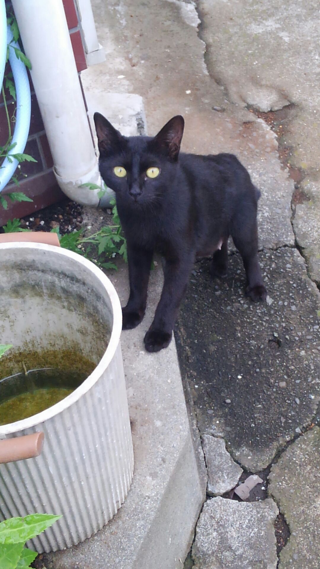 そして退院したクロちゃん、今朝はいつもの場所で朝ご飯を待っていました。