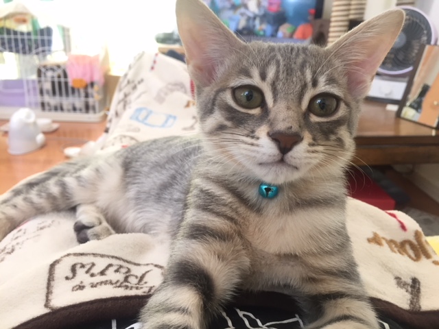 身体は譲渡時から3倍近く大きくなり、いつもママさんの後を追い膝を占領する甘えっ子になりました!