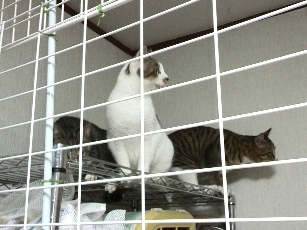 我が家のねこたちからも仕切られ、ささやかな4匹のスペースです。