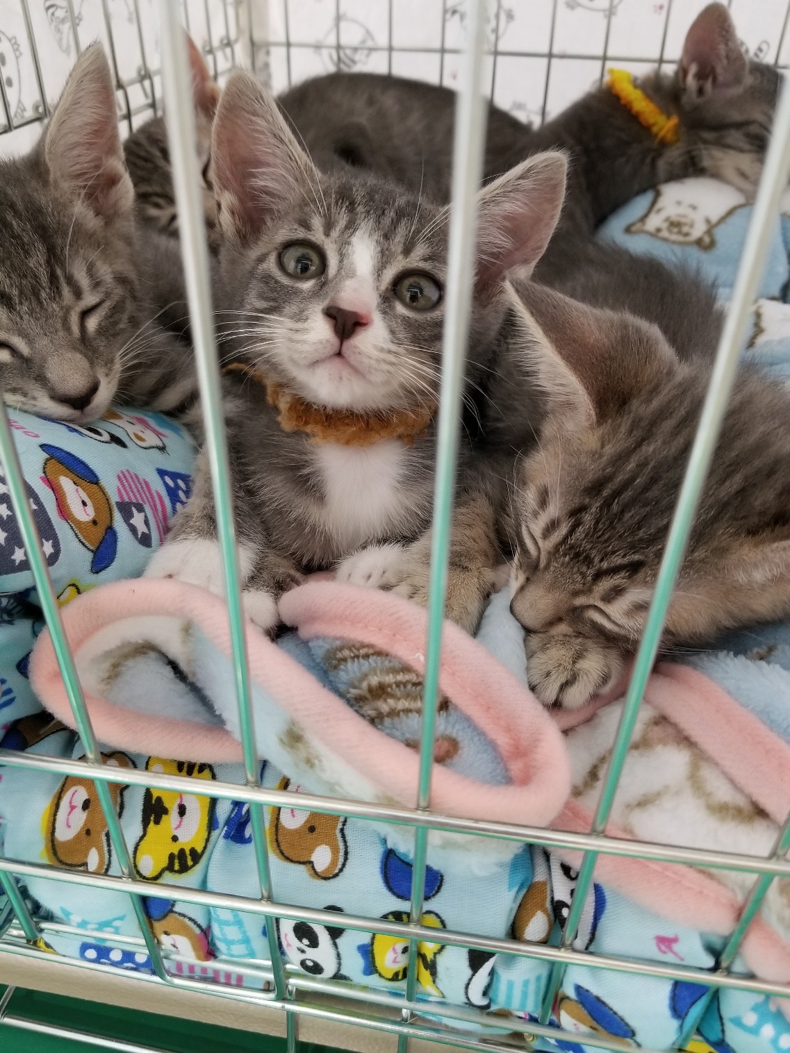 預かりさんにお願いしている姉妹2匹と、やんちゃーズ5匹は初参加で譲渡会に行ってきました。