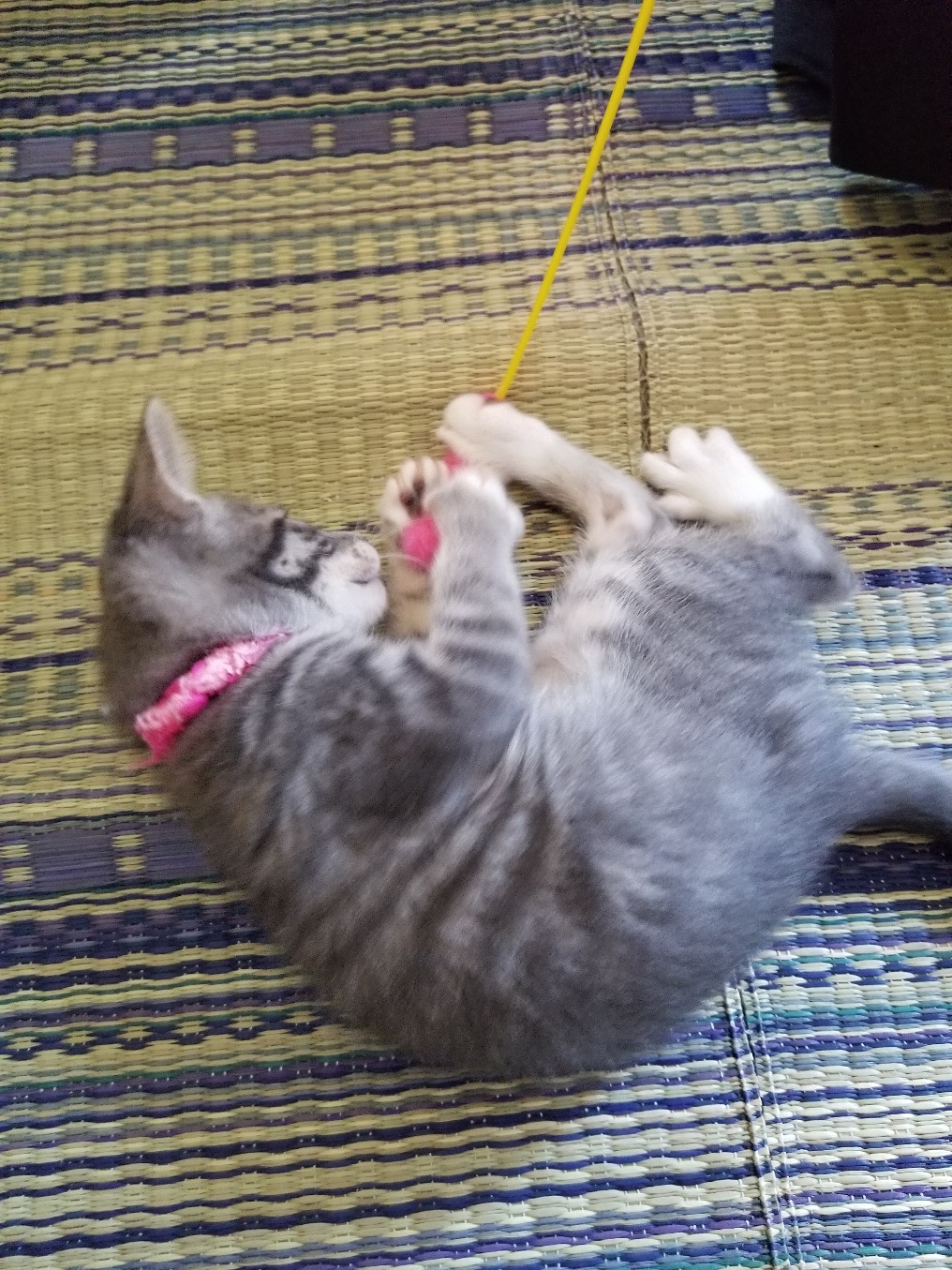 キジ白ーズのちょびたは爪も出さないし嫌がりながらもなでなでできるようになりました。