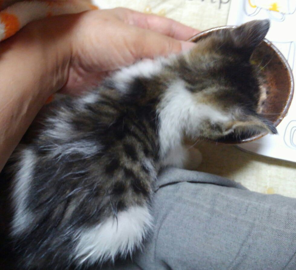 ⑦保護して1週間のりさちゃん。生後2か月くらい。