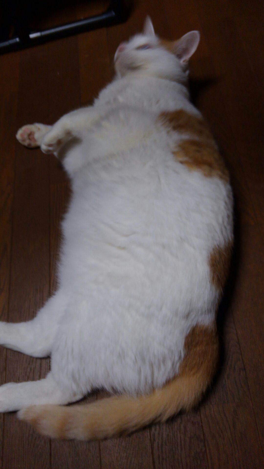 ふと猫たちを見るとなるちゃんがオジサン座りをしていました。