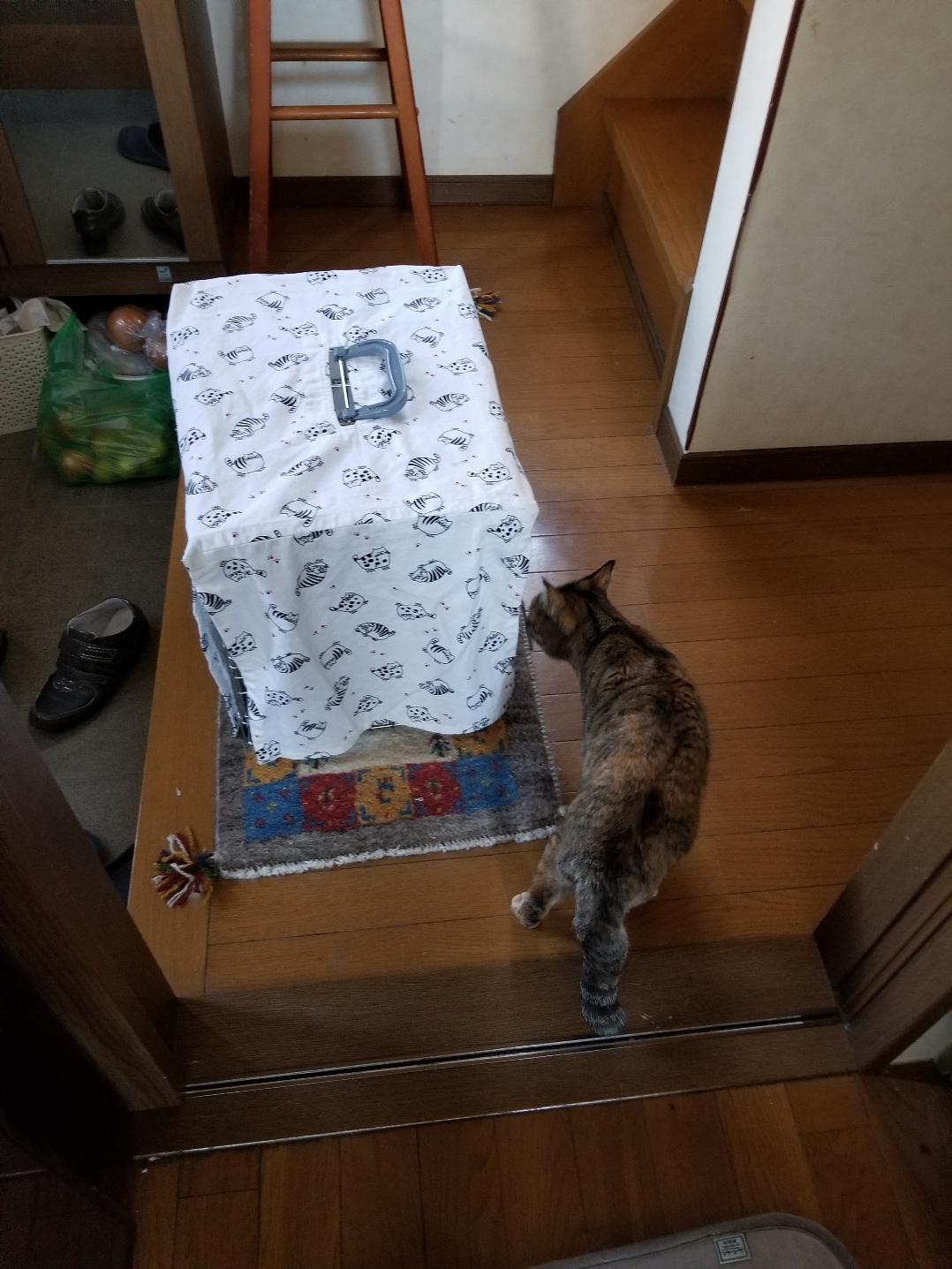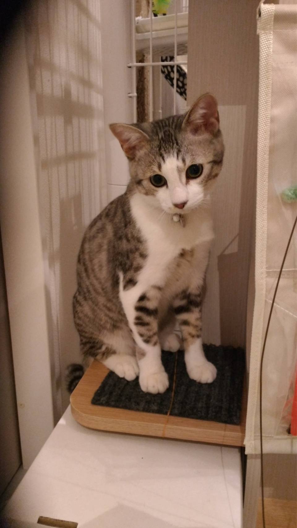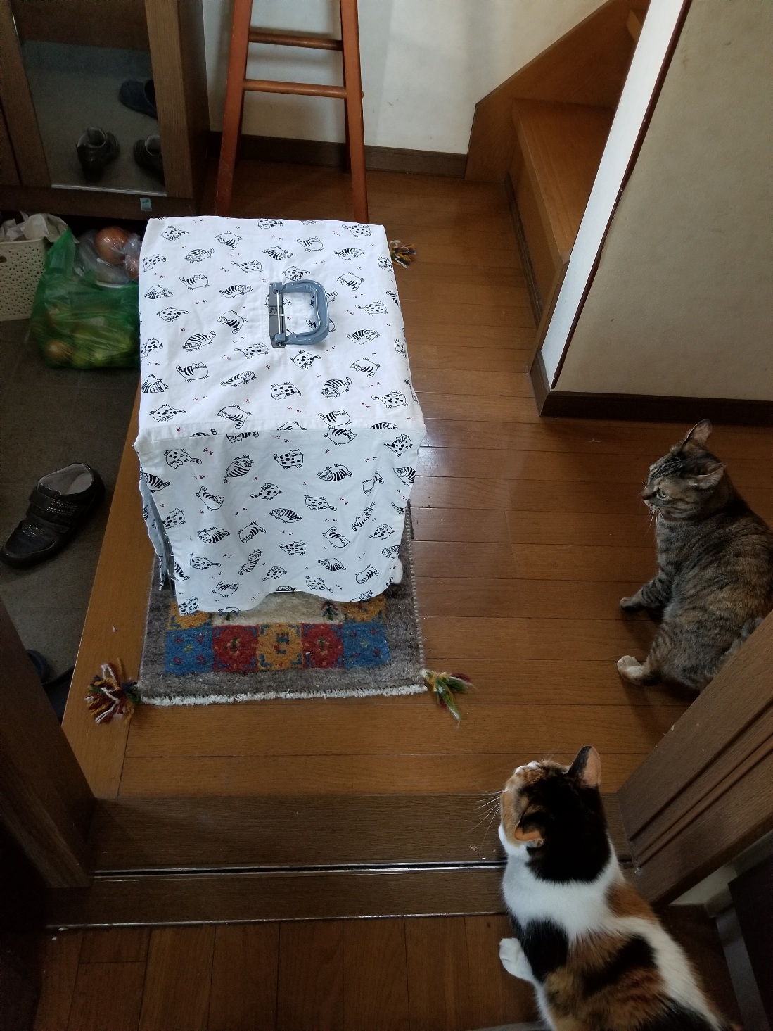 エサやりさんのお庭で暮らしていたので、室内初体験。