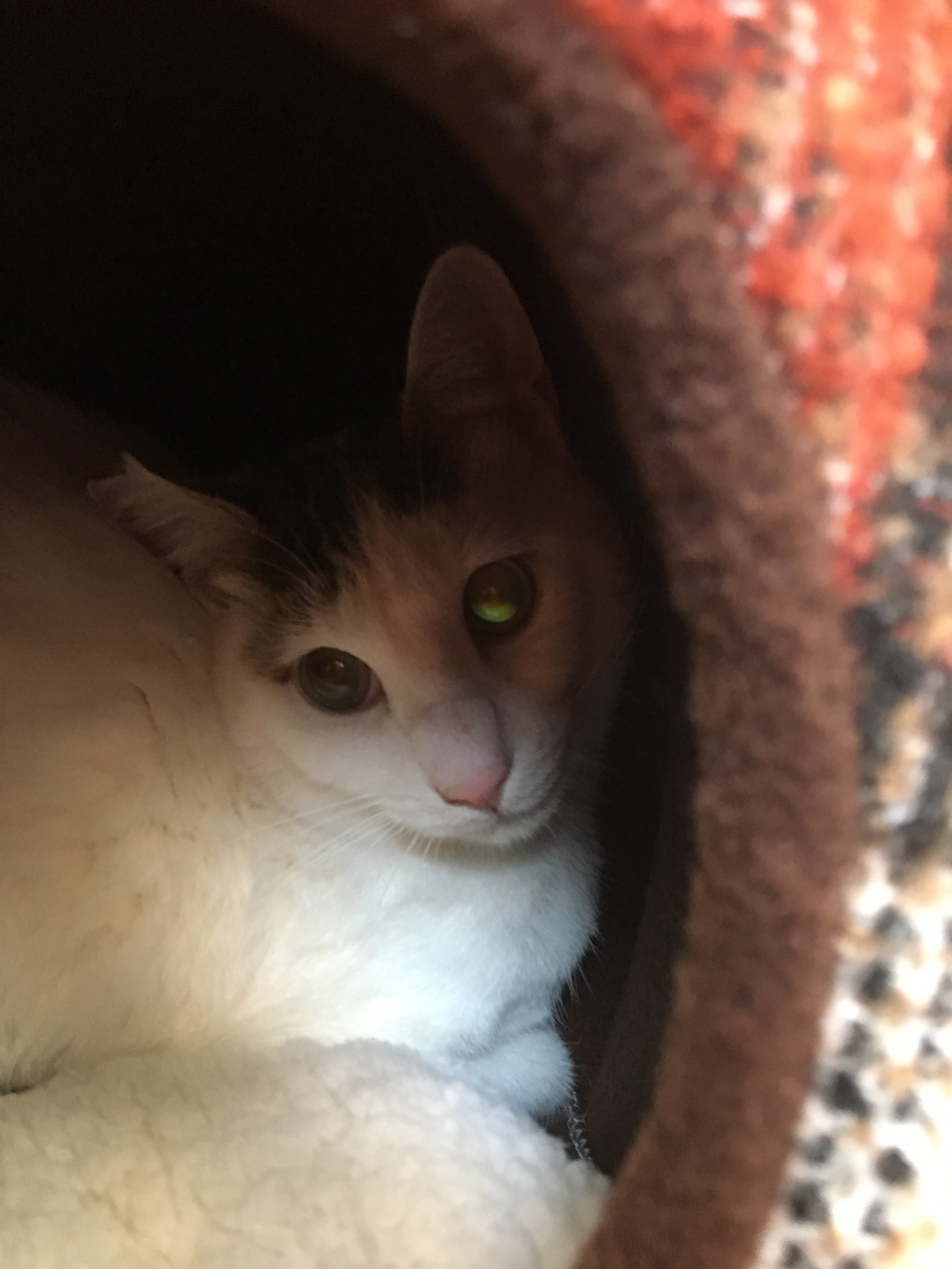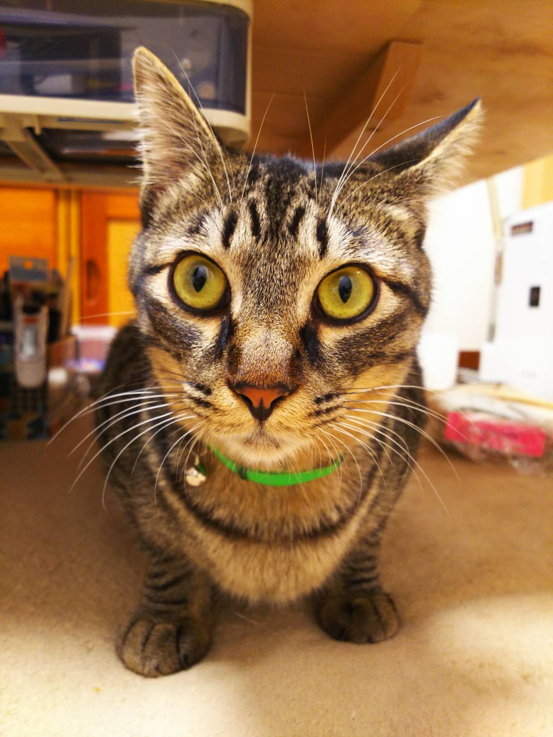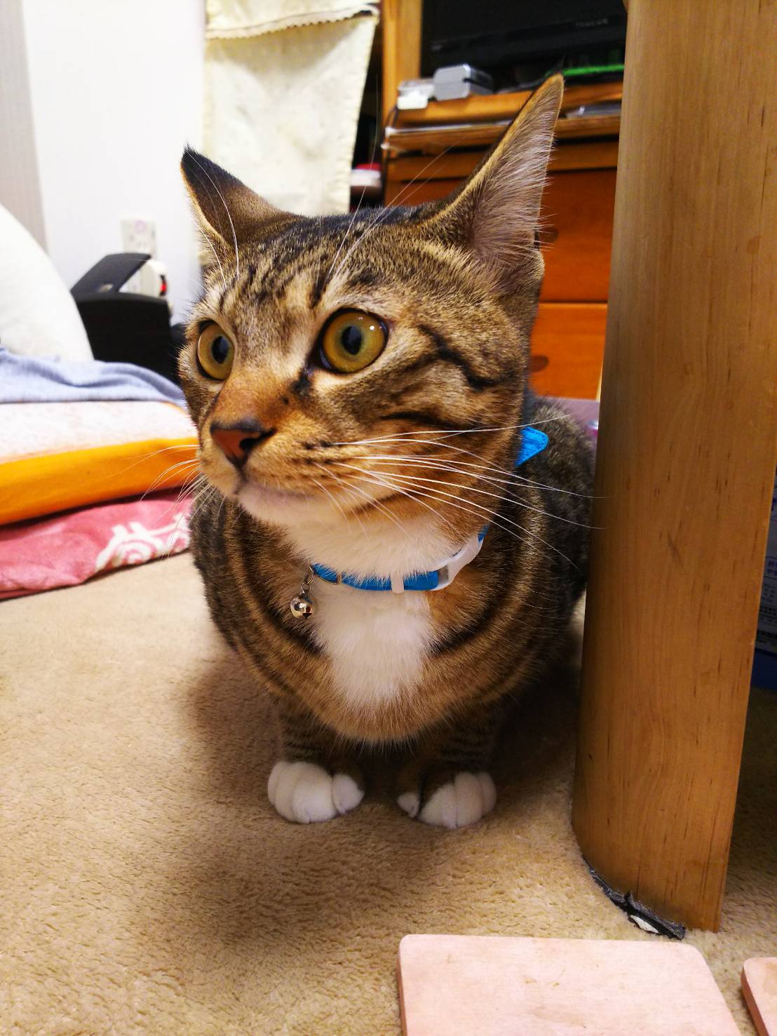 エサやりさんのお庭で暮らしていたので、室内初体験。
