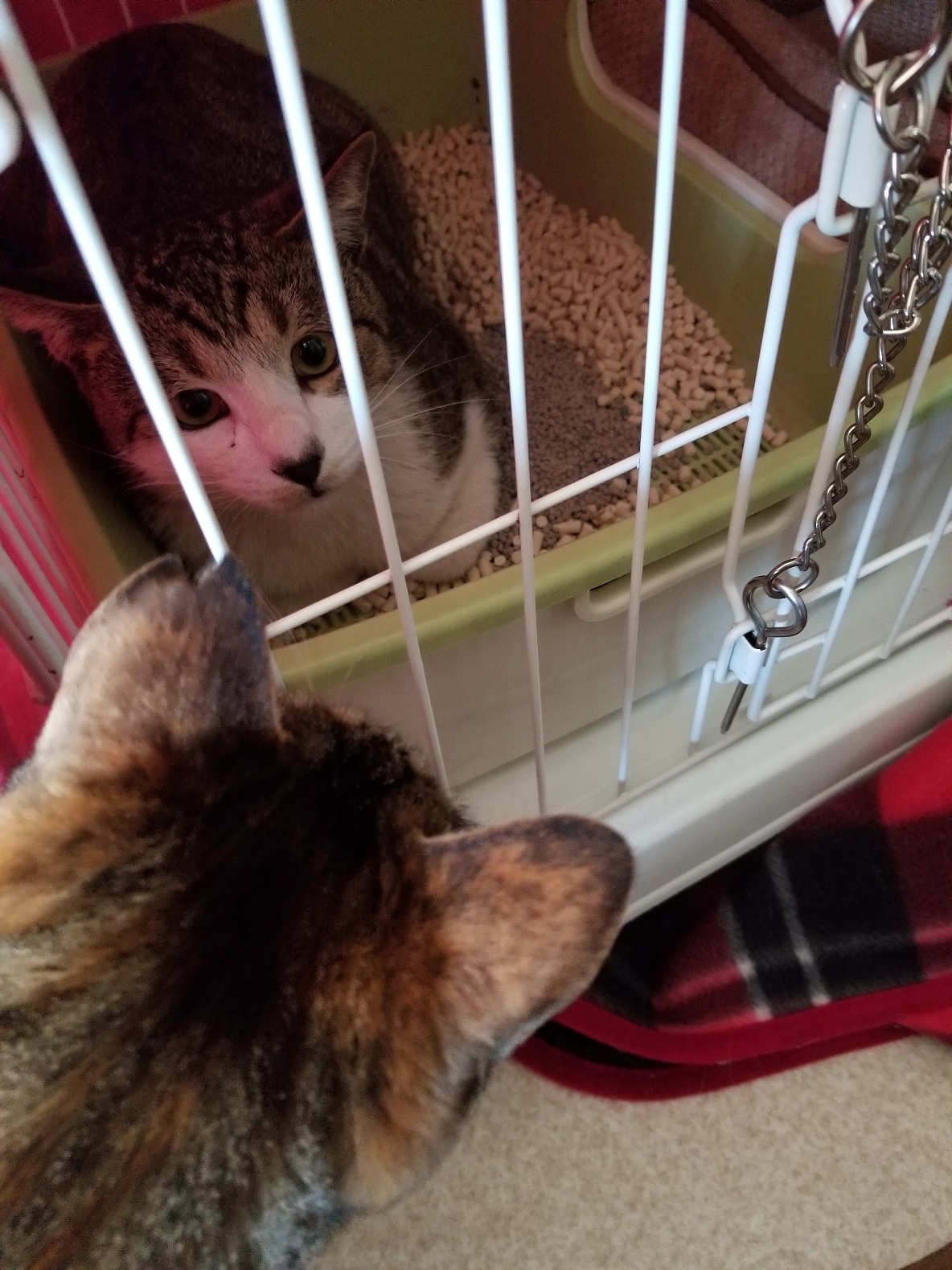 隣のゲージのクリスはガッツリ風邪の症状が出て、くしゃみがおさまったかと思ったら