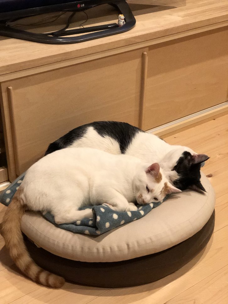 毎日食べて出して遊んで寝て甘えておねだりして、君たちは幸せだにゃ。