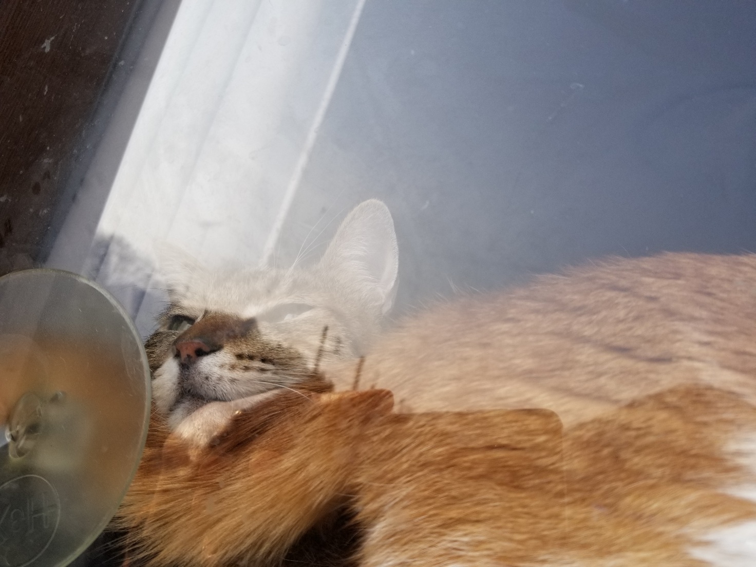 吸盤でガラスについているので落っこちないかハラハラですが、当にゃんたちは