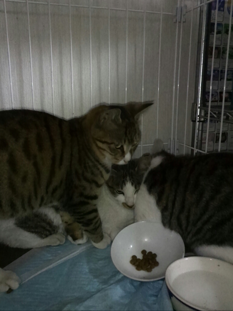 そしてママ猫は避妊去勢手術をした2匹の子猫のゲージに入れました。