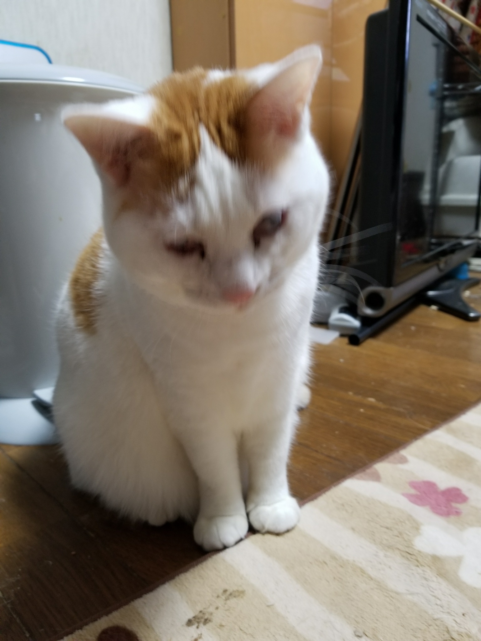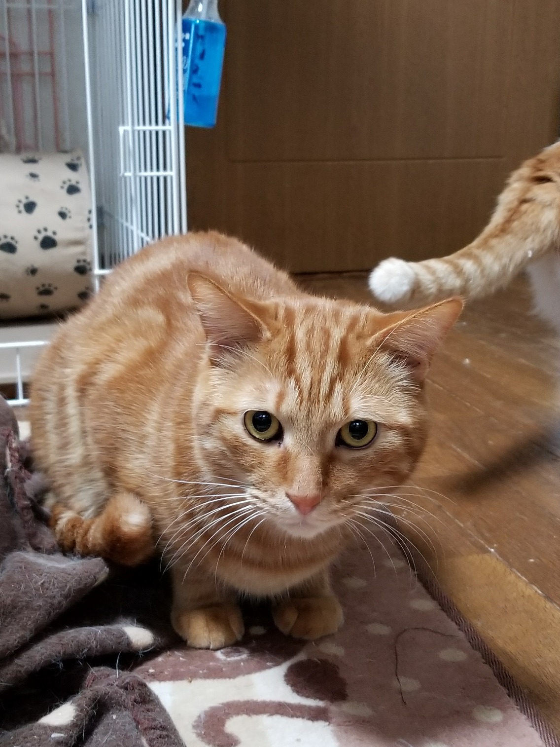 もともと野良ママさんから生まれ室内に入ったのは生後5か月くらいだったので結構たくましく、距離の離れた餌やりさんの寵愛を受けていました。