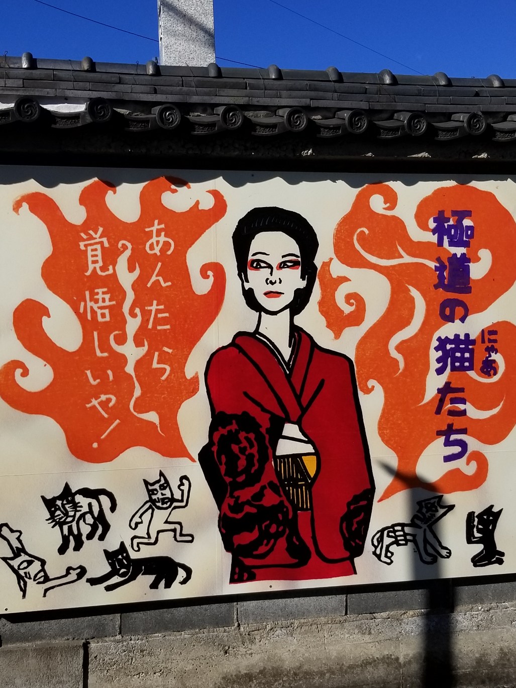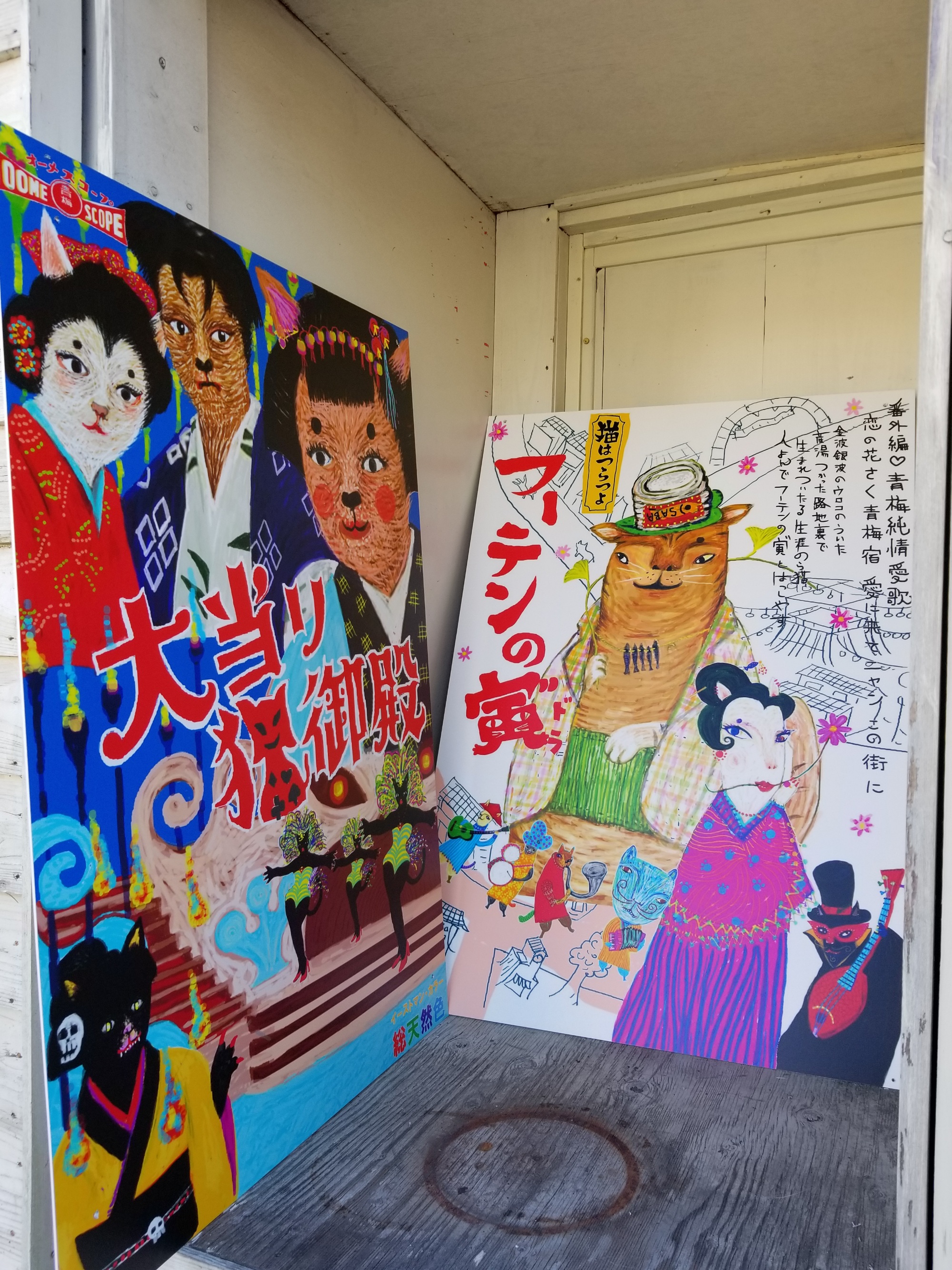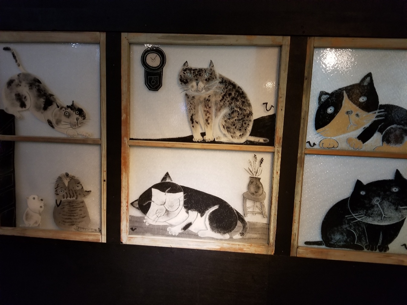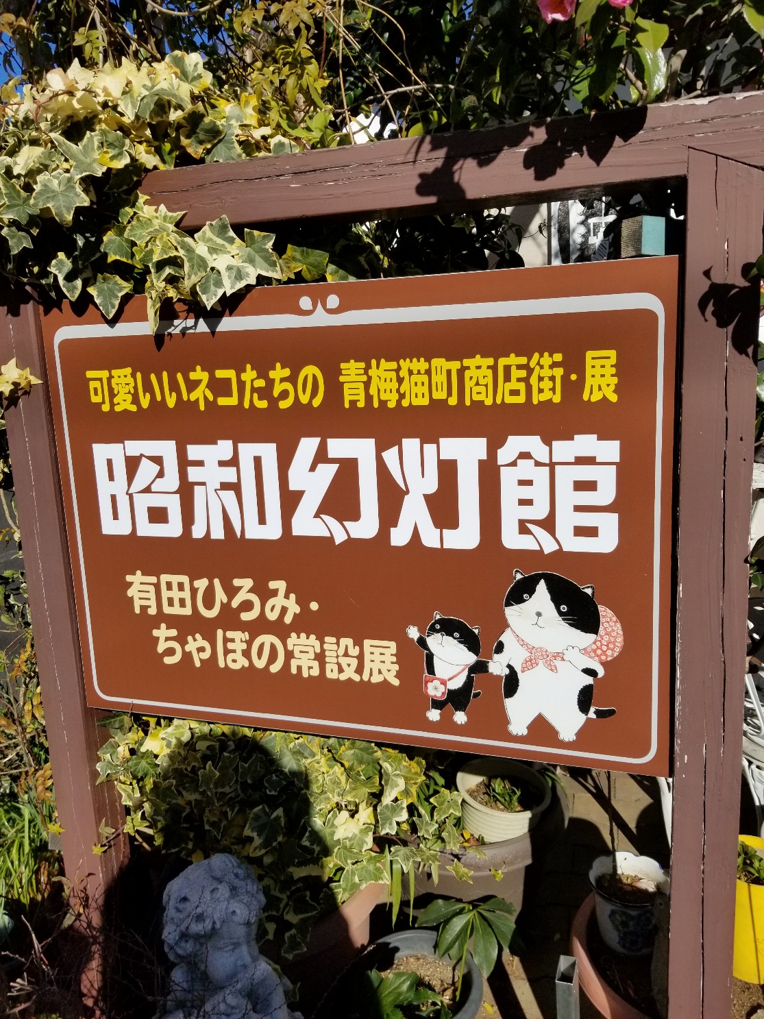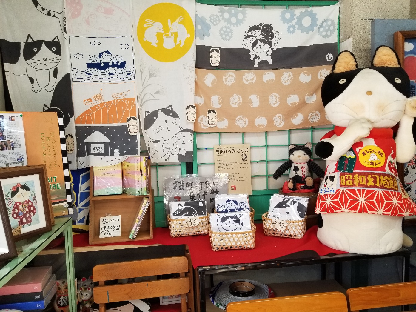 商店にはレトロな看板が猫バージョンになって飾られています。