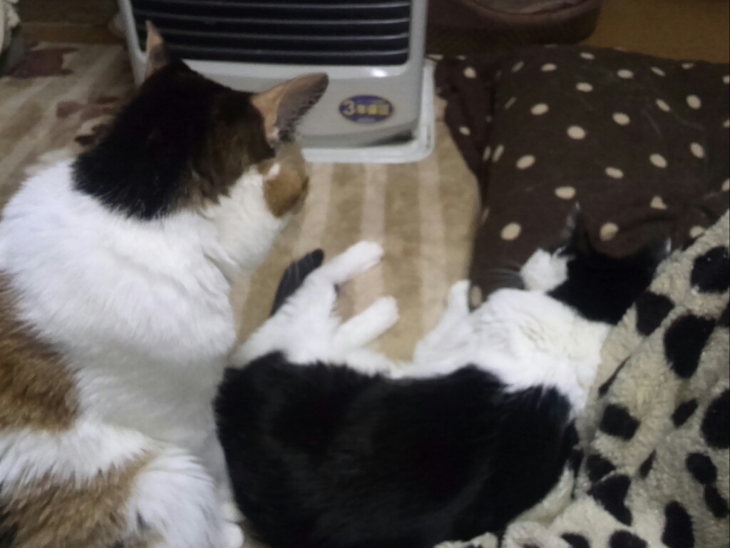 多分生後10ヵ月くらいになった、もはや子猫と呼ぶには大きい子猫2匹。