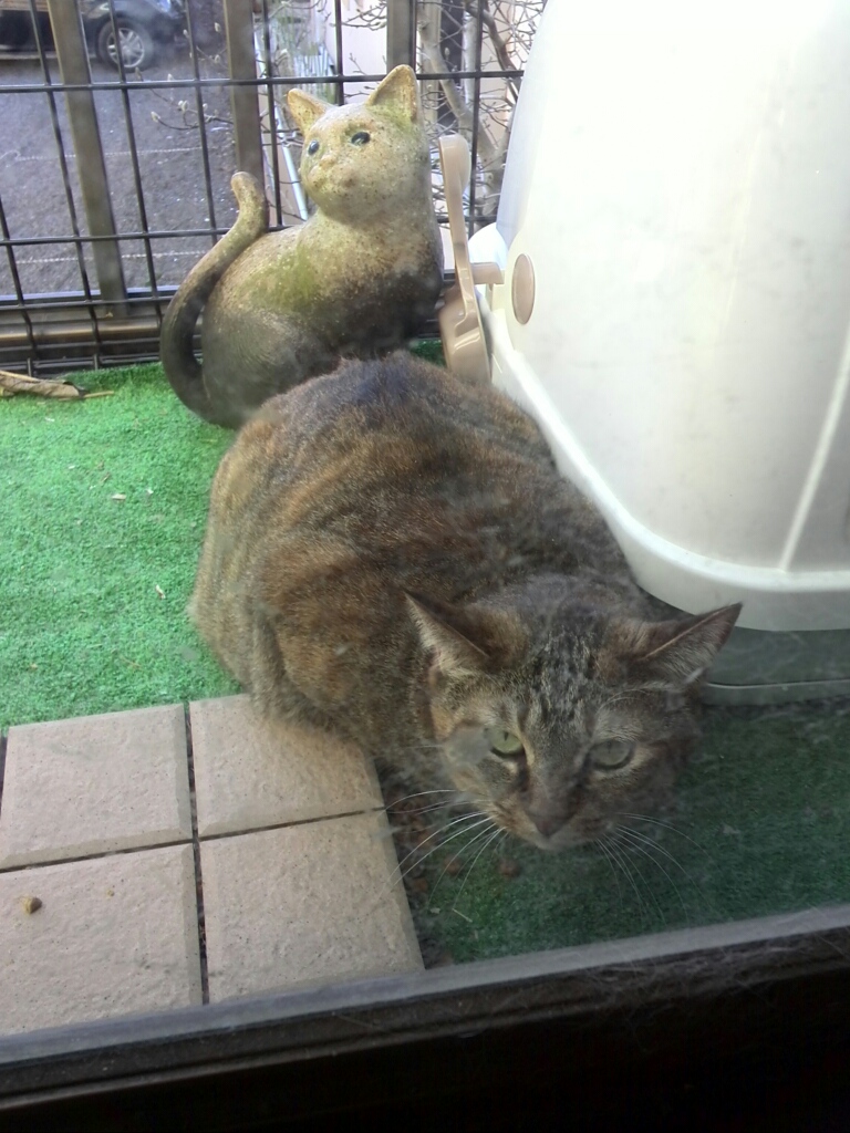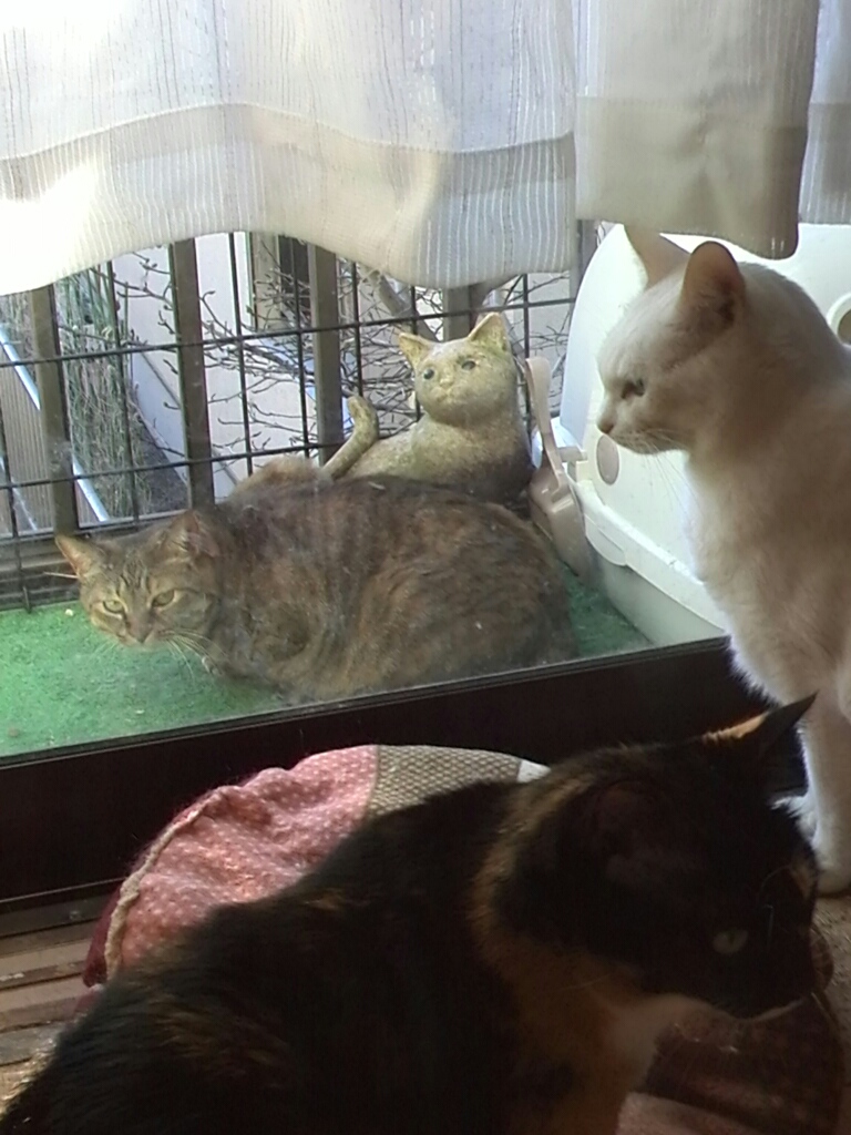 今まで猫でもドアで自由にベランダに出入りしていたのに、いきなり禁止で他の猫たちも不満げです。