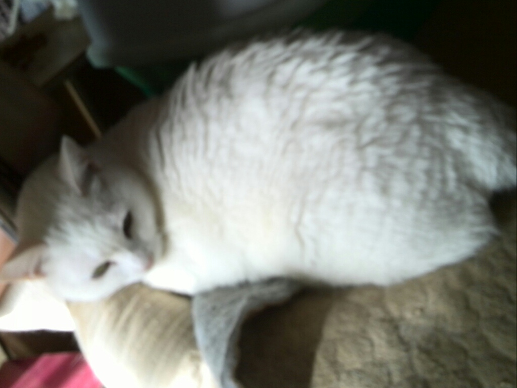 昨夜又さゆりちゃんが意地悪猫なつにいじめられたようで、同じ場所でじっとして動きません。