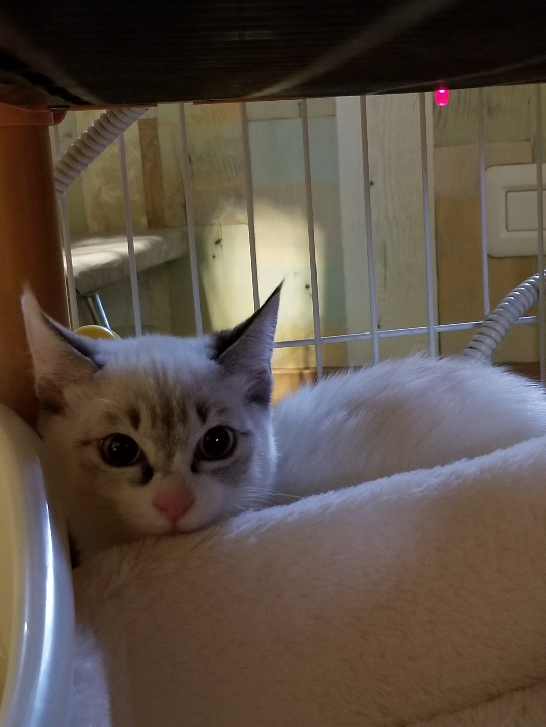 ゲージから出てパパさんに遊んでもらったり、先輩のハク君と微妙な距離を保ちつつ同じ空間を共有して仲良しへの一歩を踏み出そうかな~、といった感じです。