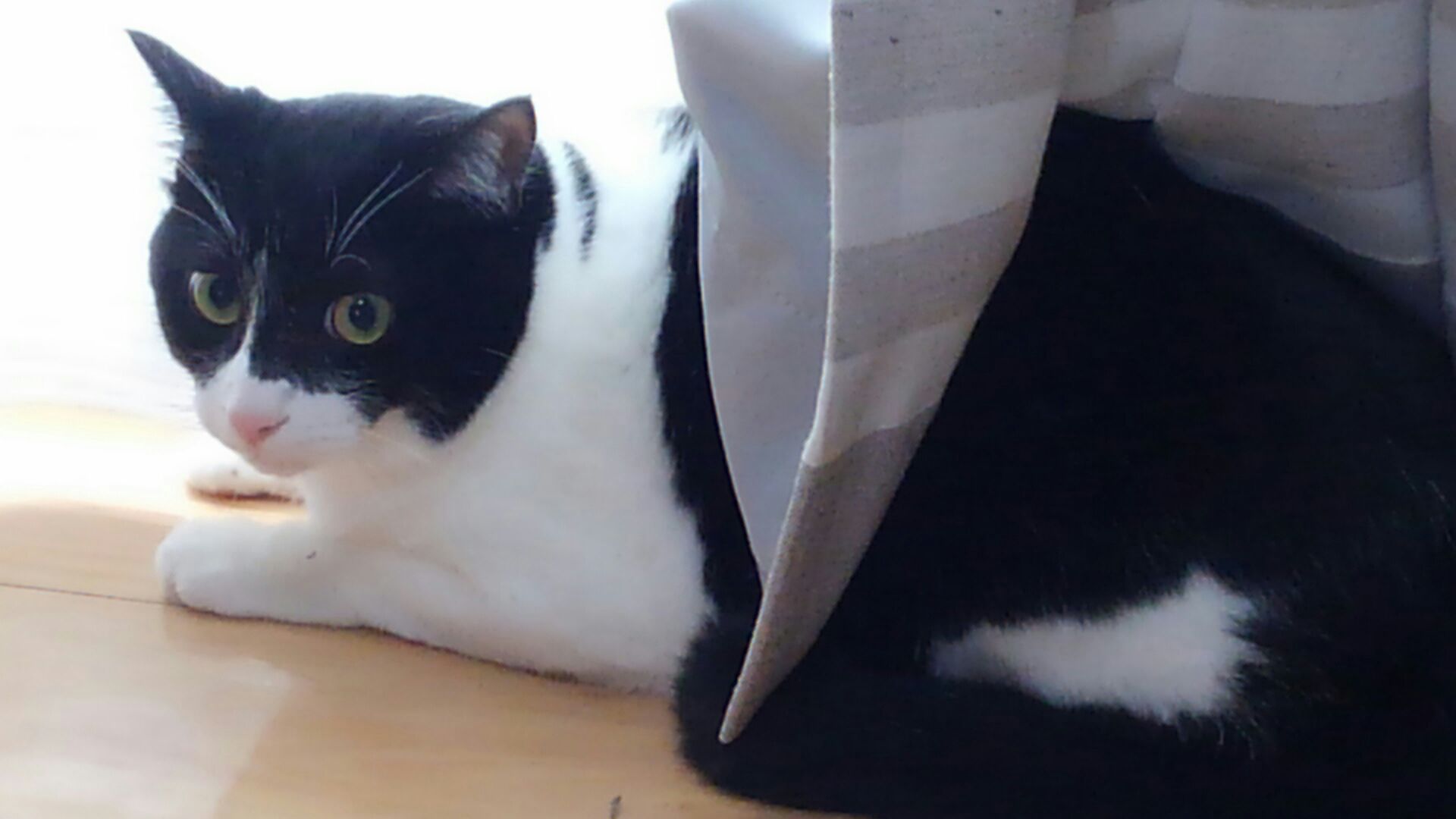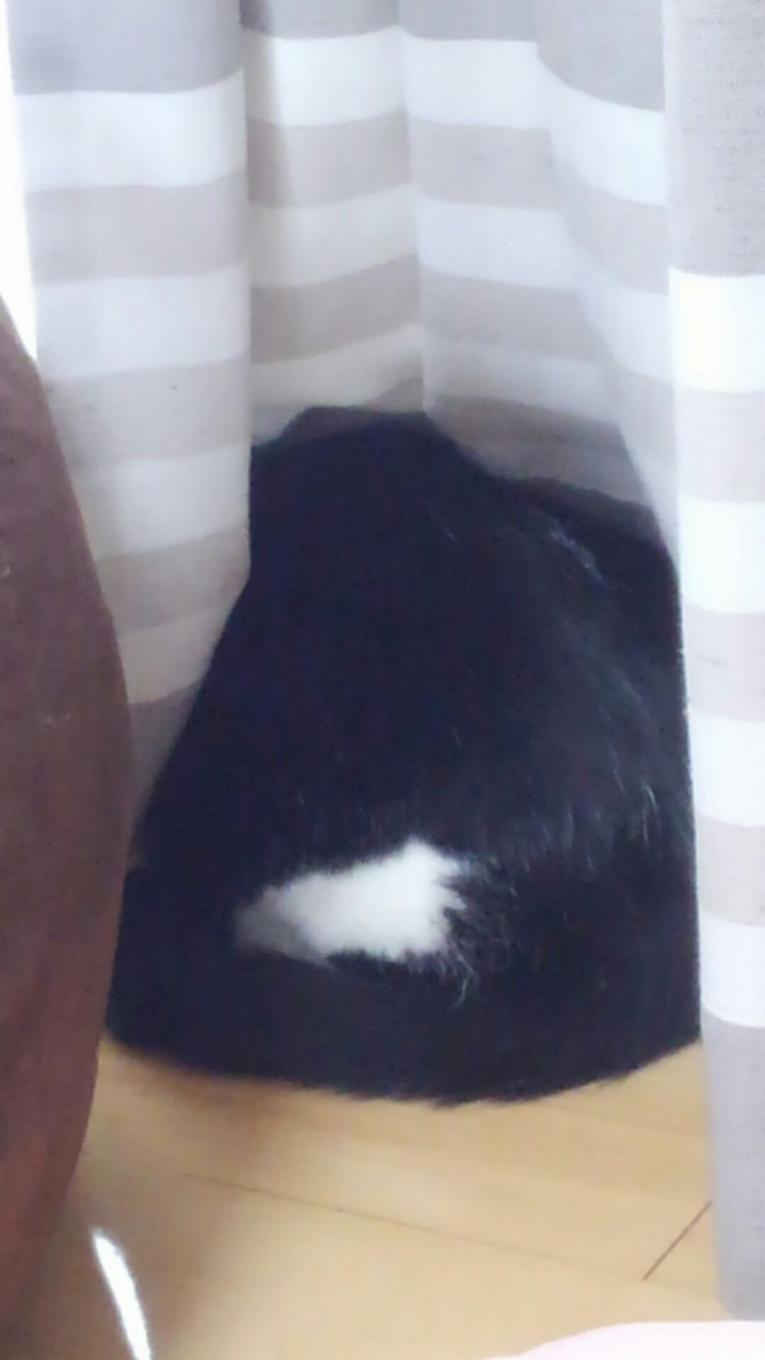 おれおにいちゃんは頭隠して尻隠さず(笑)・・・カーテンに隠れていました。