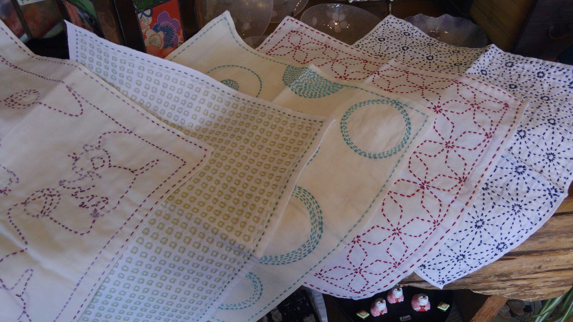 刺し子の花布巾もありますよ!