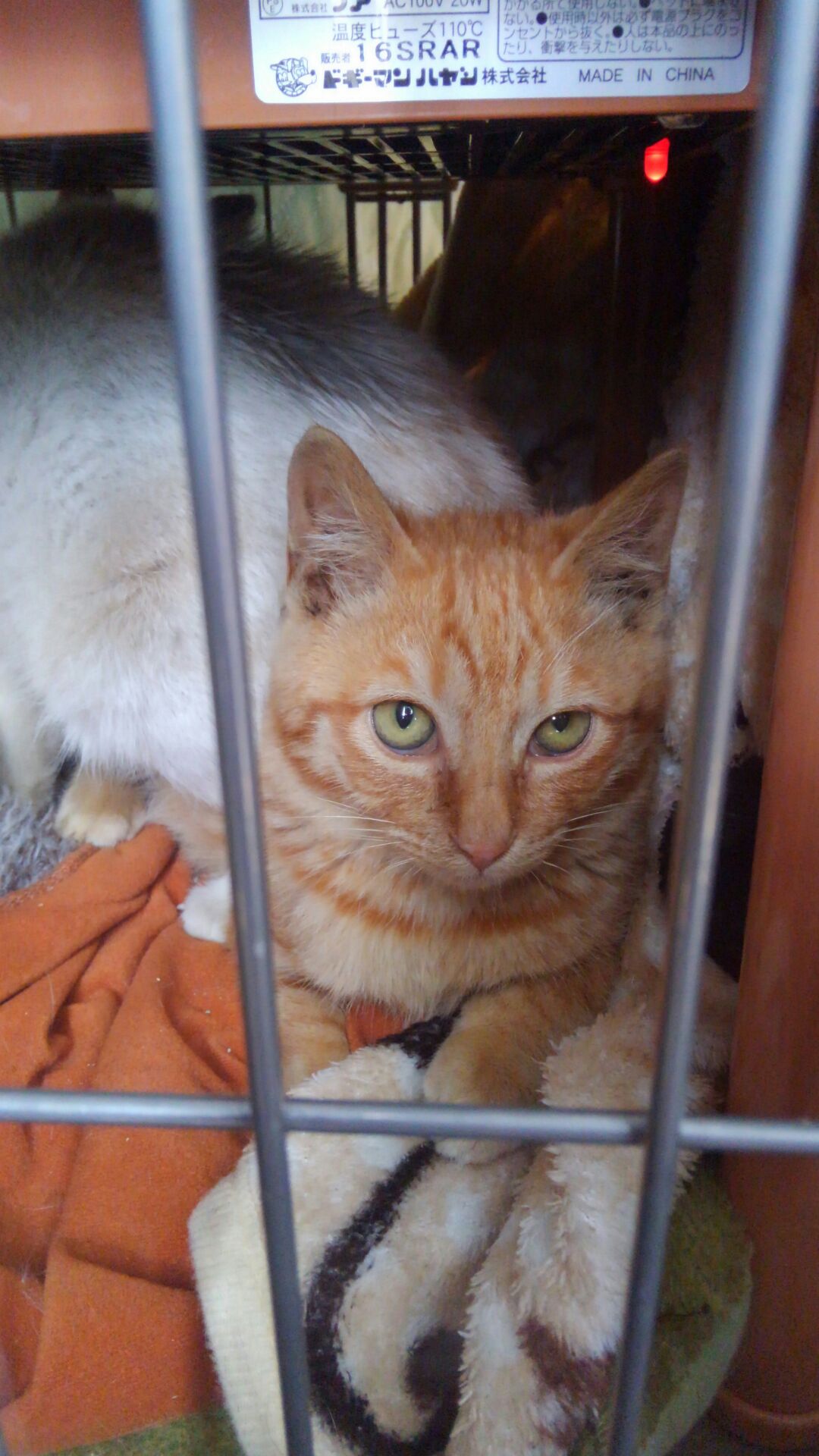 捕獲器からゲージに移すのに、威嚇もせずそれほどオドオドした様子もなく猫こたつの中に潜っていきました。